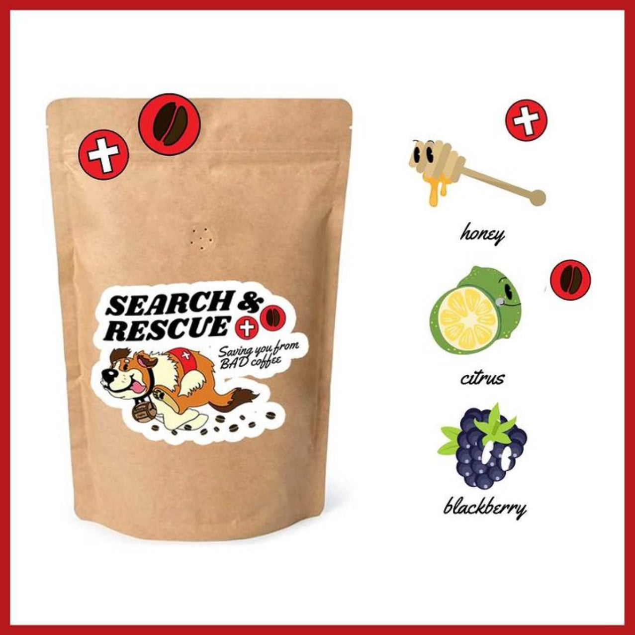 Search and Rescue: This medium roast of our 100% Honduran beans with tasting notes of Honey, Lime, and Blackberry, will rescue even the worst Monday mornings.